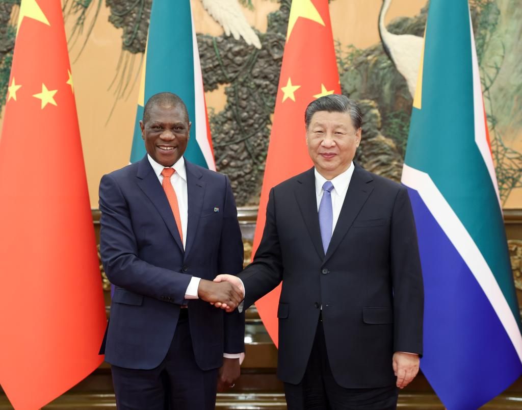 Xi also expressed China's willingness to work with South Africa and other African countries to implement China's three initiatives on supporting Africa's industrialization, agricultural modernization and talent development, as well as the eight major steps to support high-quality Belt and Road cooperation, create a number of high-standard, sustainable cooperation projects that benefit people's livelihood, work for a more strategic and sustainable China-Africa cooperation, and promote the building of a high-level China-Africa community with a shared future.