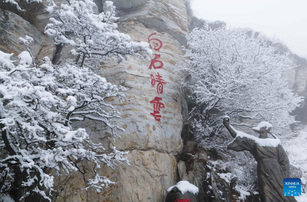 Baishi Mountain covered in snow in Laiyuan County, N China