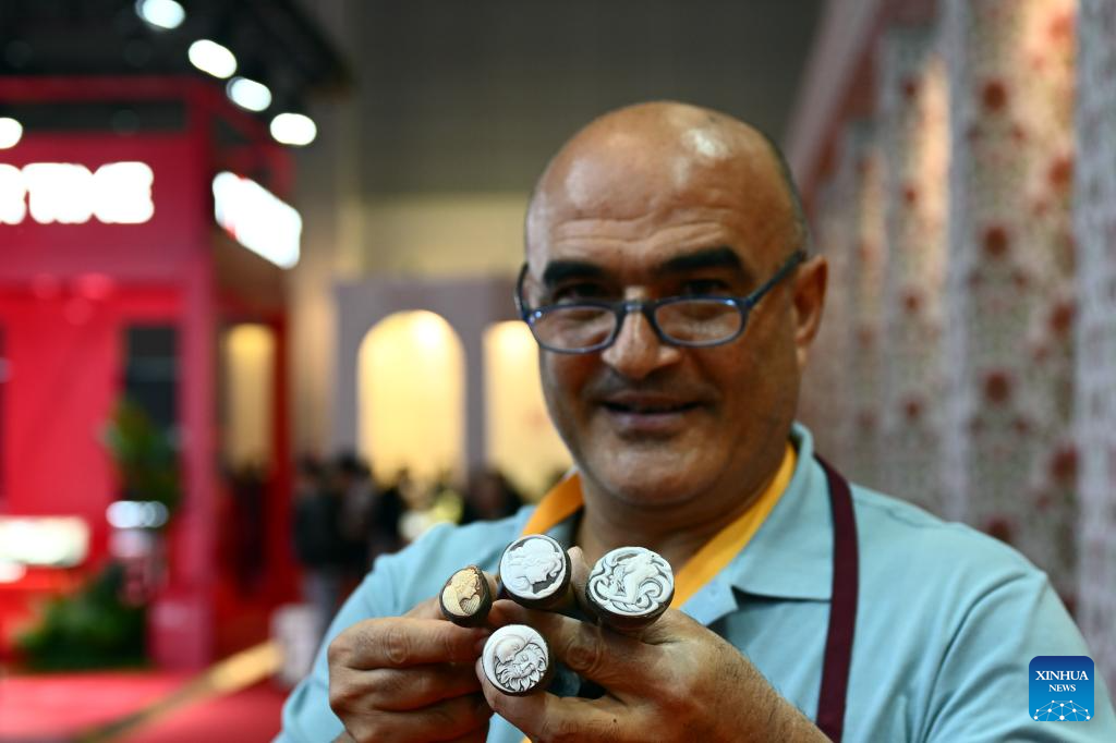 Craftman presents carving skill at CIIE