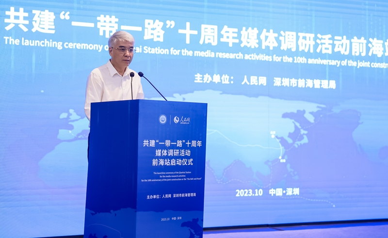 The launch of the Qianhai stop for media research activities for the 10th anniversary of the joint construction of the Belt and Road Initiative kicks off in Qianhai of Shenzhen, south China's Guangdong Province, Oct. 26, 2023. (People's Daily Online/Sun Boyang)