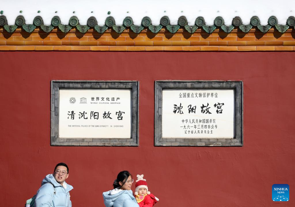 Tourists visit the snow-covered Shenyang Imperial Palace in Shenyang, northeast China's Liaoning Province, Nov. 7, 2023. Shenyang Imperial Palace was built in 1625 and had been used as the imperial palace in early Qing Dynasty (1616-1911). (Xinhua/Long Lei)