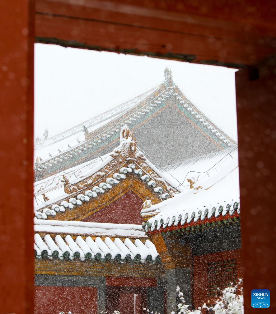 This photo taken on Nov. 6, 2023 shows the snow-covered Shenyang Imperial Palace in Shenyang, northeast China's Liaoning Province. Shenyang Imperial Palace was built in 1625 and had been used as the imperial palace in early Qing Dynasty (1616-1911). (Xinhua/Chen Wei)