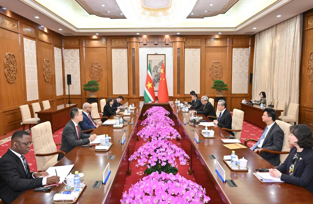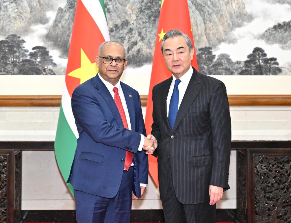 Wang, also a member of the Political Bureau of the Communist Party of China Central Committee, said that China and Suriname enjoy a long history of friendship, and this year marks the 170th anniversary of the arrival of the Chinese in Suriname. China is willing to be Suriname's reliable partner in the process of development and revitalization and jointly realize modernization.