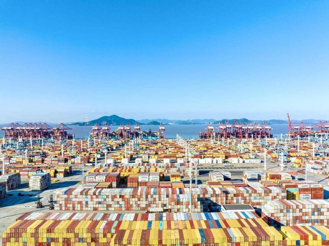 Containers are handled orderly in the Chuanshan area of Ningbo-Zhoushan Port in east China's Zhejiang province. (People's Daily/Tang Jiankai)