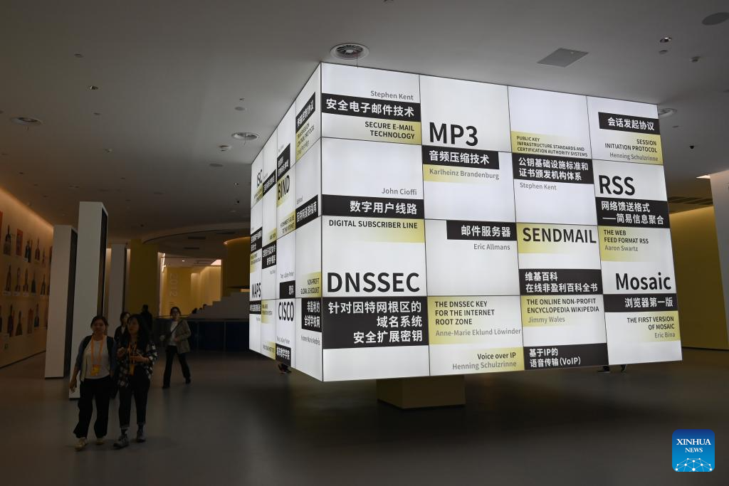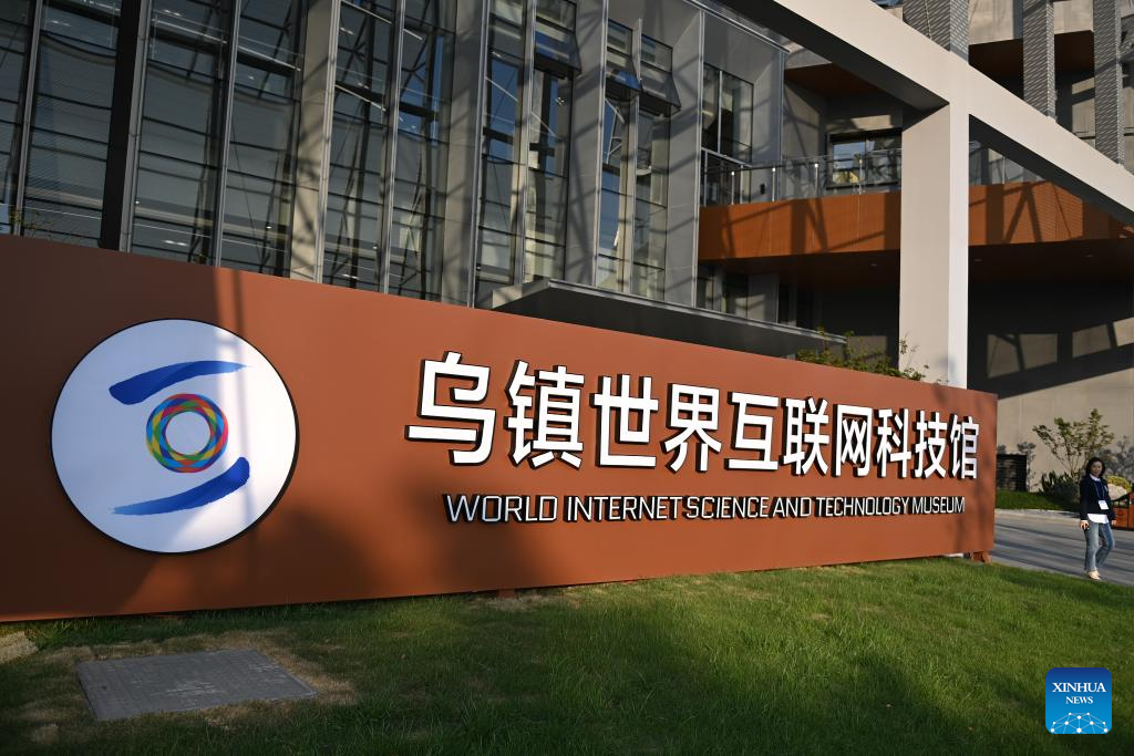 People visit an exhibition at the World Internet Science and Technology Museum in Wuzhen, east China's Zhejiang Province, Nov. 7, 2023. (Xinhua/Huang Zongzhi)
