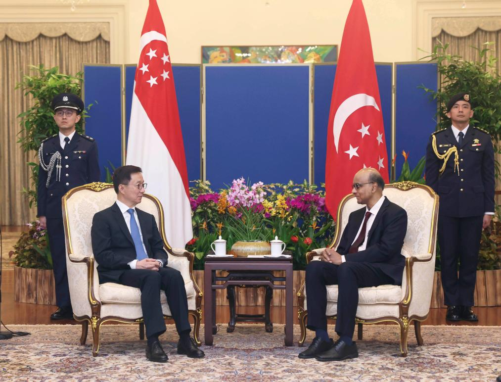 At a separate meeting with Singaporean President Tharman Shanmugaratnam, Han said China and Singapore are important cooperation partners, and their cooperation has shown strong resilience and vitality, which he believed will produce more and better results in the future.