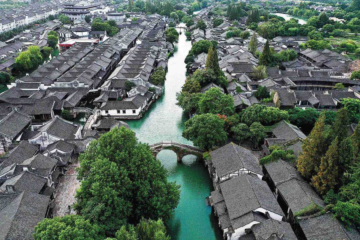 An aerial view of Wuzhen, the permanent site of the World Internet Conference. [Photo/Xinhua]