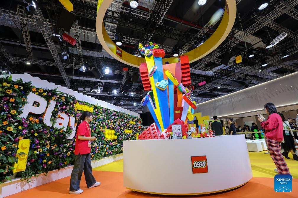 People visit the LEGO booth at the 6th China International Import Expo (CIIE) in east China's Shanghai, Nov. 8, 2023. The 6th China International Import Expo (CIIE), which has attracted over 3,400 exhibitors globally, showcases China's new development paradigm and builds a broad platform for global business to gain more opportunities in the world's most promising market. (Xinhua/Xin Mengchen)