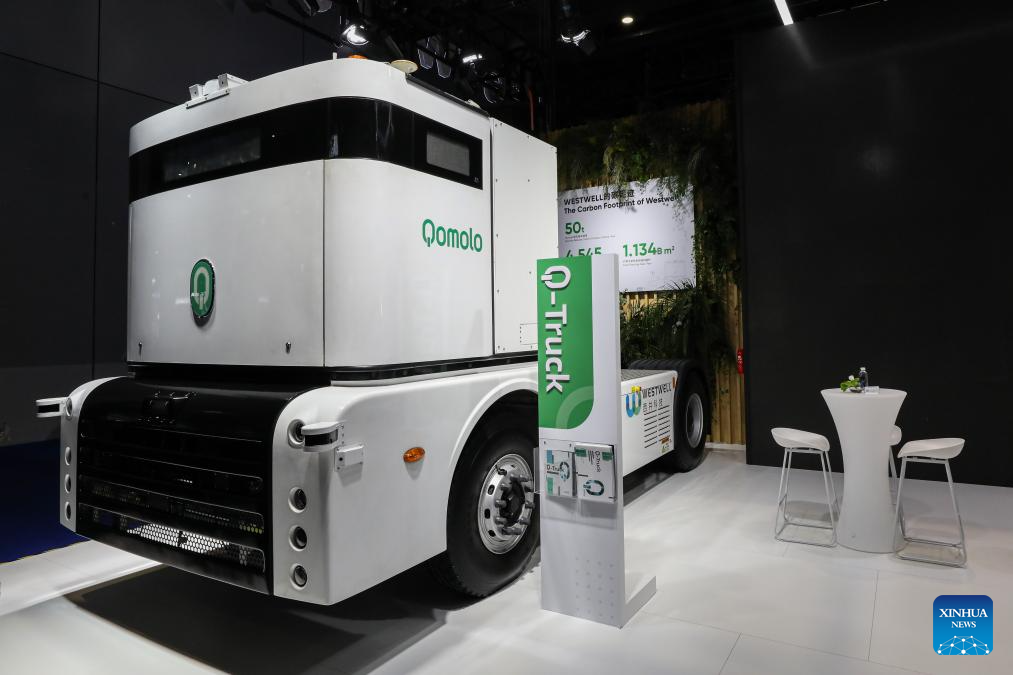 This photo shows a driverless new energy vehicle of Westwell Technology Co., Ltd at the 6th China International Import Expo (CIIE) in east China's Shanghai, Nov. 8, 2023. The 6th China International Import Expo (CIIE), which has attracted over 3,400 exhibitors globally, showcases China's new development paradigm and builds a broad platform for global business to gain more opportunities in the world's most promising market. (Xinhua/Xin Mengchen)