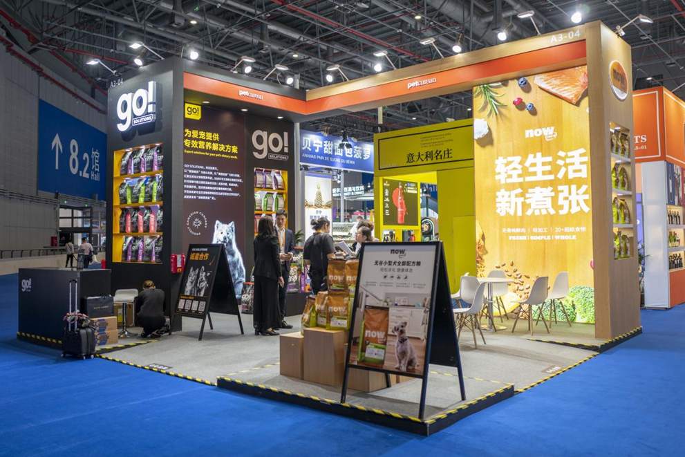 Photo shows the booth of Petcurean, which is participating in the China International Import Expo for the first time. (People's Daily Online/Wang Chu)