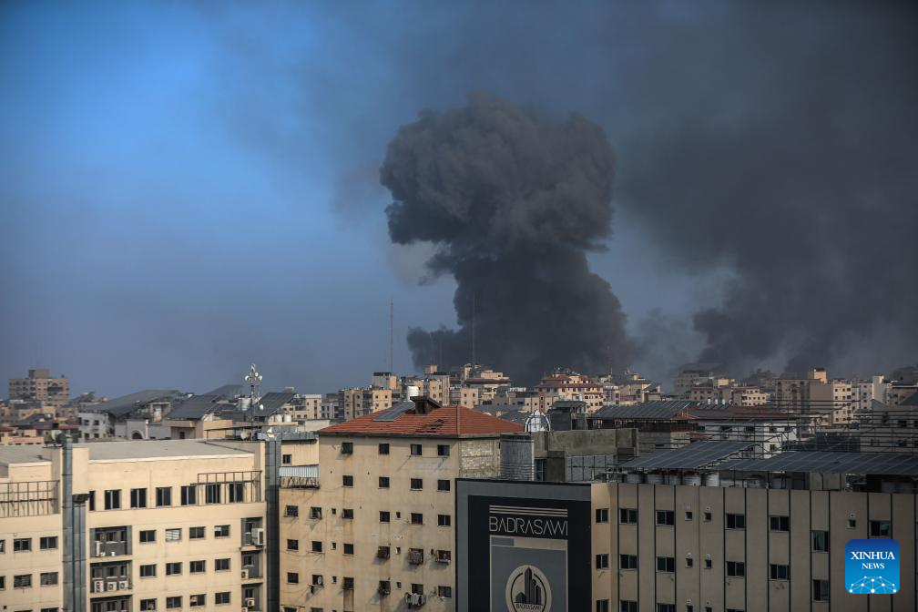 Smoke rises following an Israeli airstrike in Gaza City, on Nov. 9, 2023. (Xinhua)