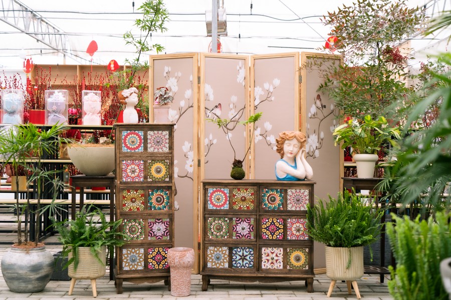 Plant-based soft decorations designed by Hu Wenlan and her team are pictured in Hefei, east China's Anhui Province, Jan. 14, 2023. (Xinhua/Zhao Jinzheng)