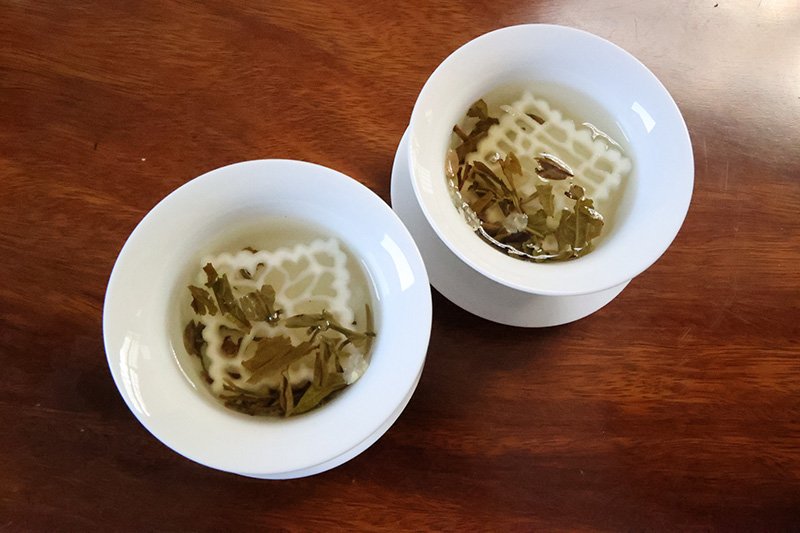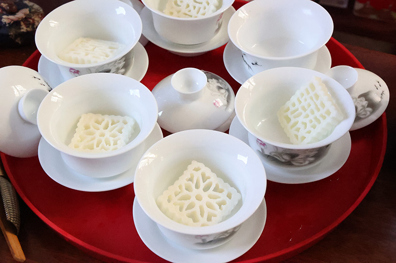Photo shows cups of tea with Chapao, a kind of dessert made of wax gourd and used for brewing tea, in Yulin city, south China's Guangxi Zhuang Autonomous Region. (Photo/Peng Chuwen)