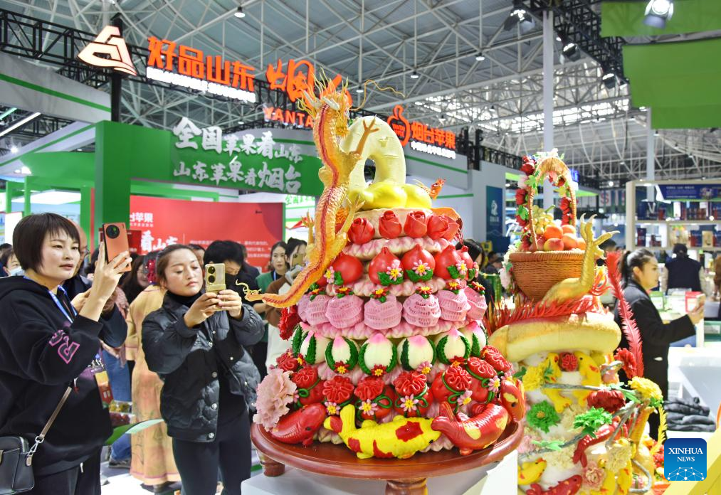 With 11 exhibition areas totaling 120,000 square meters, the fair saw over 20,000 types of agricultural products on display, brought by 3,000 enterprises. The products include grain and oil, fruits and vegetables, livestock and poultry, aquatic products and prefabricated dishes, among others.