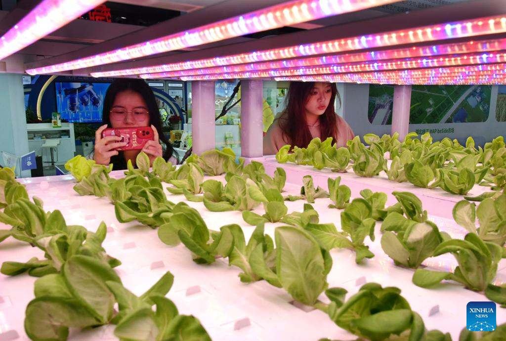 A visitor takes photos at the 20th China International Agricultural Trade Fair in Qingdao, east China's Shandong Province, Nov. 9, 2023. The 20th China International Agricultural Trade Fair kicked off Thursday in Qingdao with around 3,000 exhibitors attending the fair. (Xinhua/Li Ziheng)