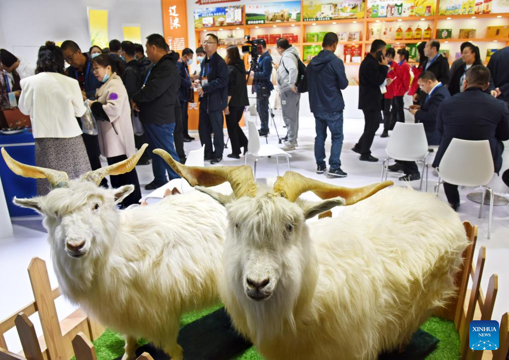 People visit the 20th China International Agricultural Trade Fair in Qingdao, east China's Shandong Province, Nov. 9, 2023. The 20th China International Agricultural Trade Fair kicked off Thursday in Qingdao with around 3,000 exhibitors attending the fair. (Xinhua/Li Ziheng)