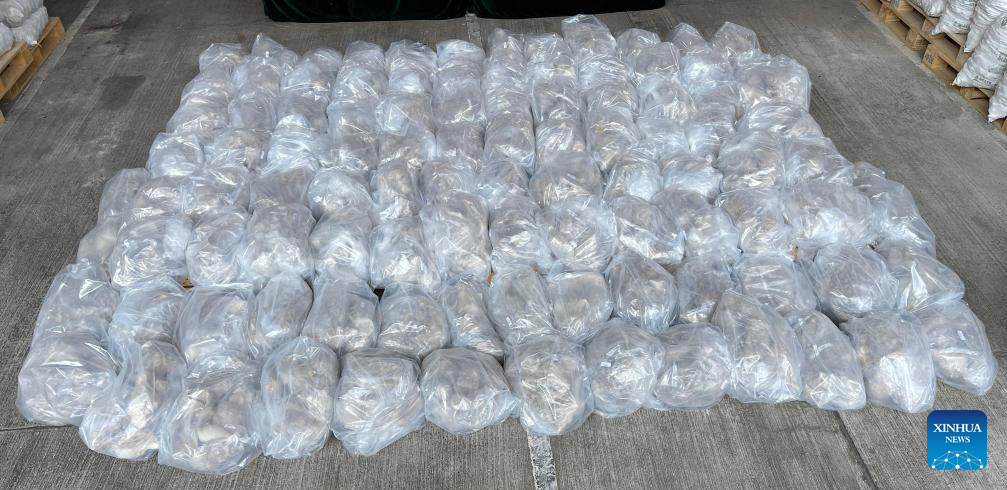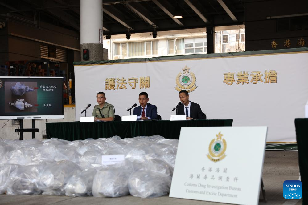 HONG KONG, Nov. 9 (Xinhua) -- Hong Kong Customs has detected a large-scale suspected solid methamphetamine trafficking case recently, and seized about 1.1 tonnes of suspected methamphetamine camouflaged as seashells.