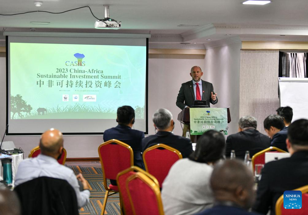 Daniel O'Malley, head of the Regional Delegation of the International Committee of the Red Cross in Nairobi, speaks during the 2023 China-Africa Sustainable Investment Summit in Nairobi, Kenya, on Nov. 9, 2023. (Xinhua/Han Xu)