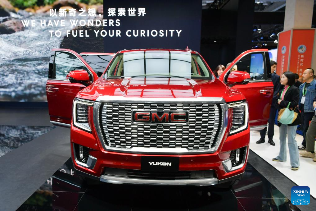 A Yukon Denali SUV of GMC is exhibited at the 6th China International Import Expo (CIIE) in east China's Shanghai, Nov. 6, 2023. (Xinhua/Meng Tao)