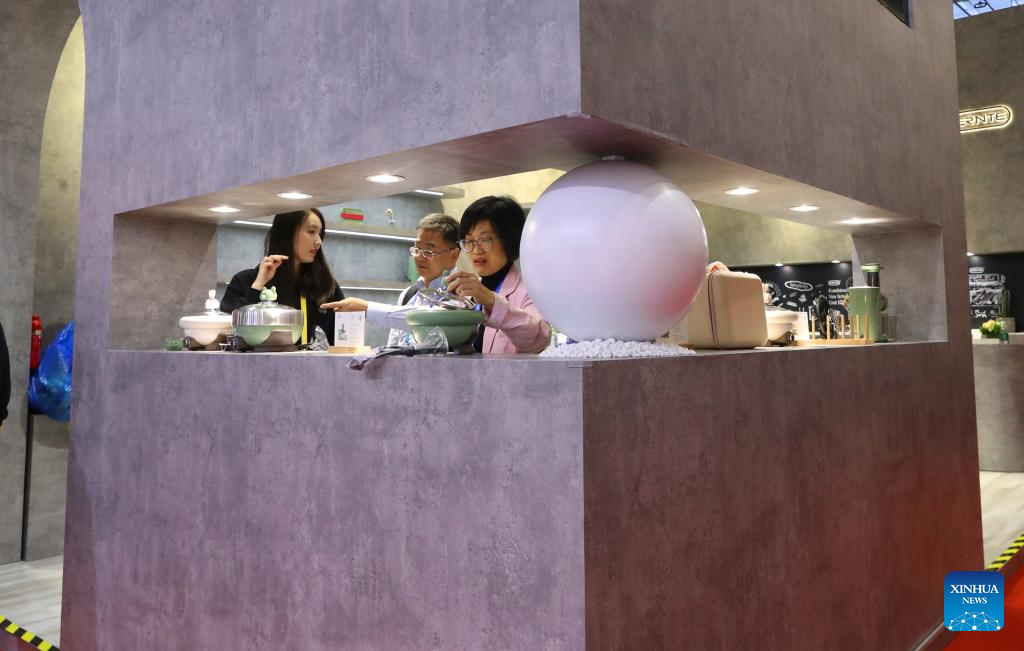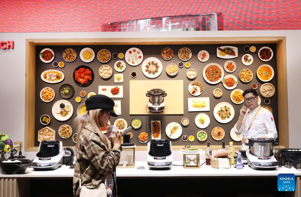 A visitor walks past a booth of kitchen appliances at the 6th China International Import Expo (CIIE) in east China's Shanghai, Nov. 10, 2023. (Xinhua/Fang Zhe)