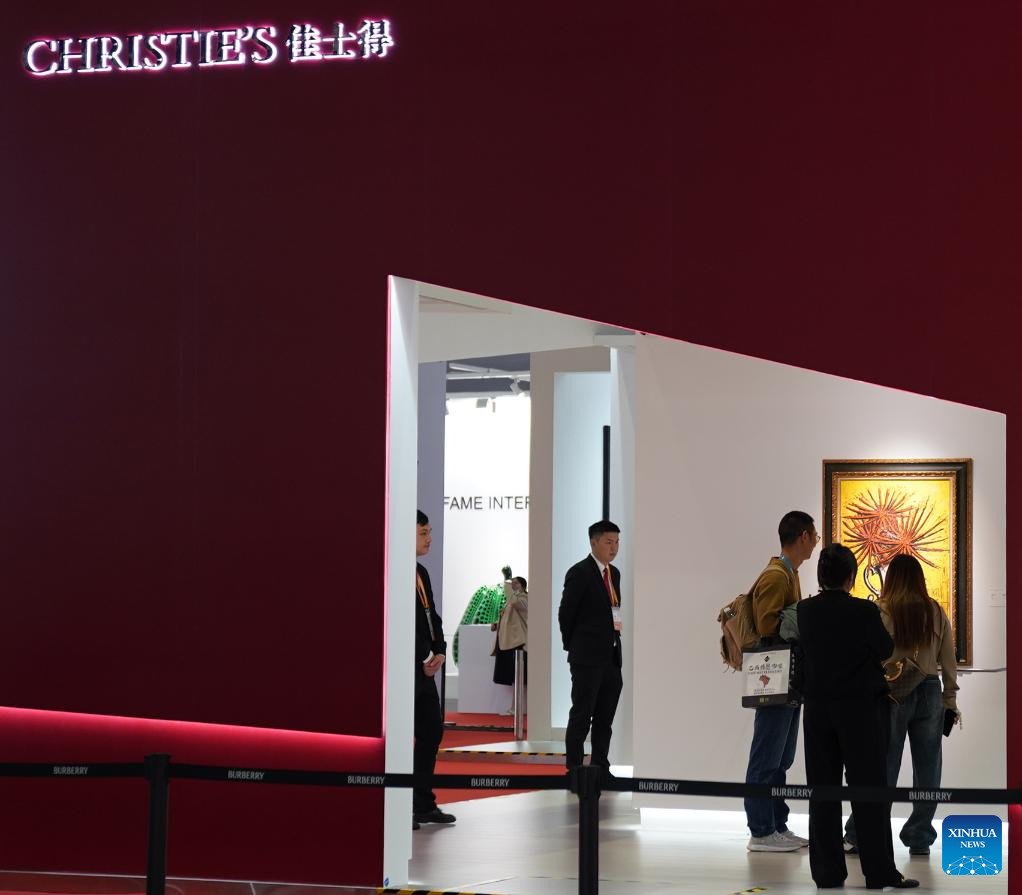People visit the booth of Christie's at the 6th China International Import Expo (CIIE) in east China's Shanghai, Nov. 9, 2023. (Xinhua/Li Mengjiao)