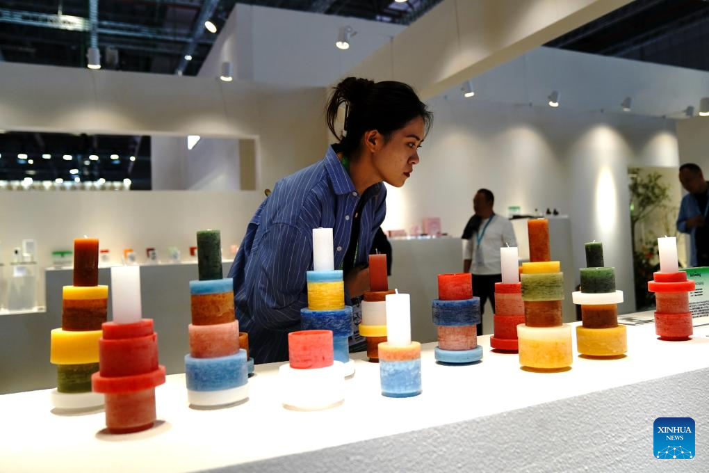 A visitor views Belgian candles at the 6th China International Import Expo (CIIE) in east China's Shanghai, Nov. 6, 2023. (Xinhua/Zhang Jiansong)