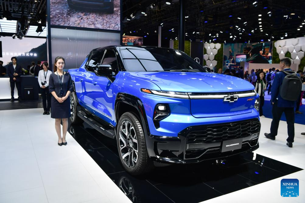 An electric truck of Chevrolet is exhibited at the 6th China International Import Expo (CIIE) in east China's Shanghai, Nov. 6, 2023. (Xinhua/Meng Tao)