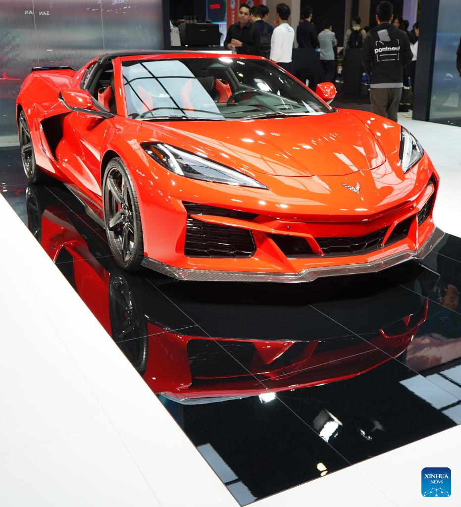 A hybird sports car of Chevrolet is exhibited at the 6th China International Import Expo (CIIE) in east China's Shanghai, Nov. 10, 2023. (Xinhua/Jin Haoyuan)