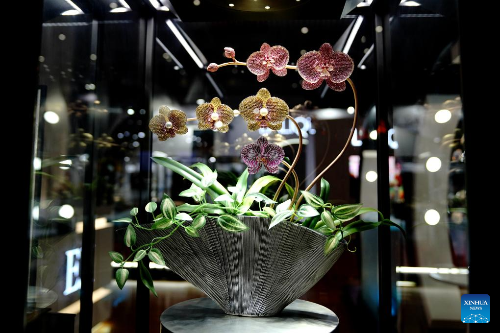 A decoration set with jewels is displayed at the 6th China International Import Expo (CIIE) in east China's Shanghai, Nov. 9, 2023. (Xinhua/Zhang Jiansong)