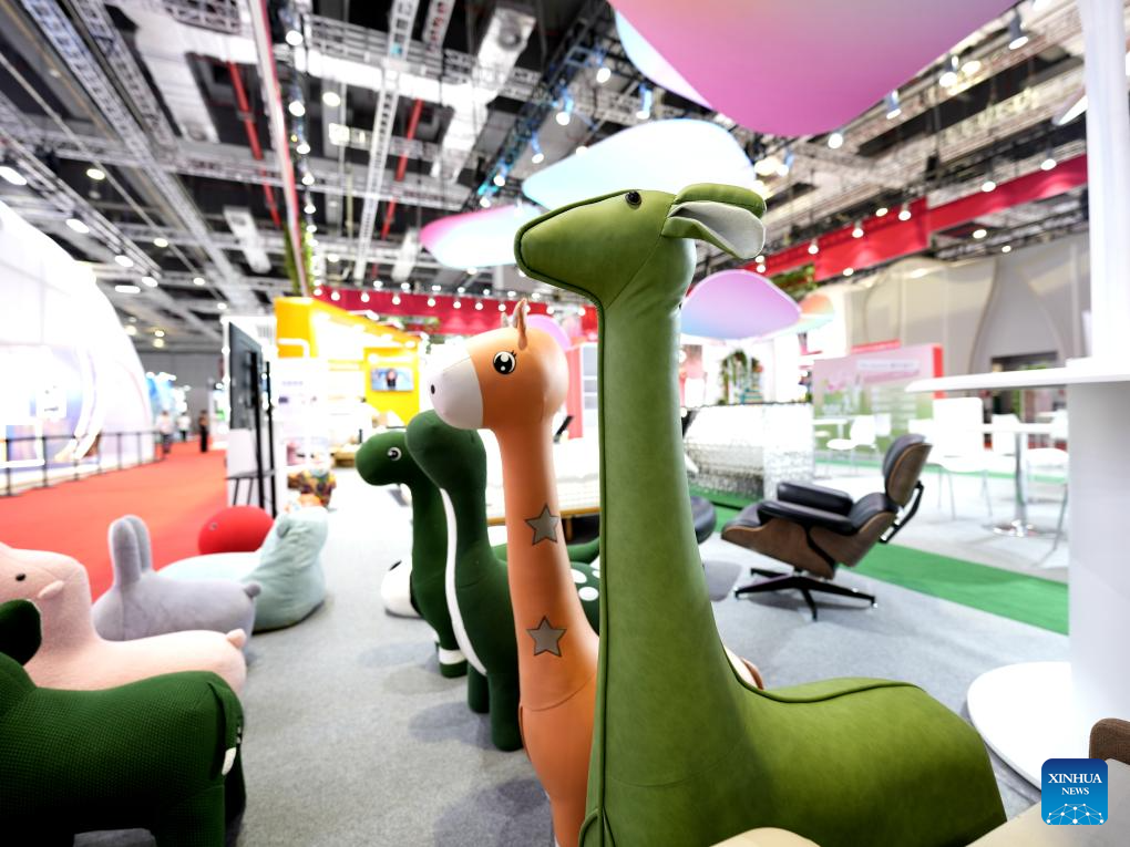This photo taken on Nov. 5, 2023 shows furniture from Singapore at the 6th China International Import Expo (CIIE) in east China's Shanghai. (Xinhua/Zhang Jiansong)