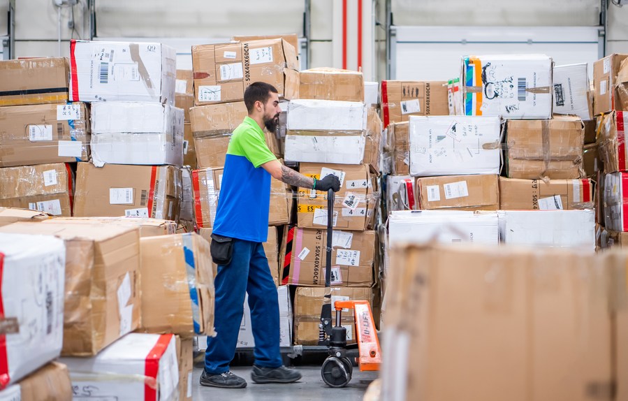A staff member works at a warehouse of Cainiao in Madrid, Spain, Nov. 9, 2023. (Xinhua)