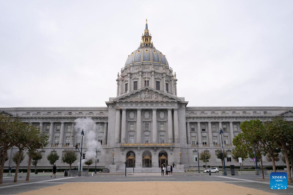 This photo taken on Nov. 5, 2023 shows the City Hall in San Francisco, California, the United States. The 30th APEC Economic Leaders' Meeting is going to be held in San Francisco. (Photo by Li Jianguo/Xinhua)