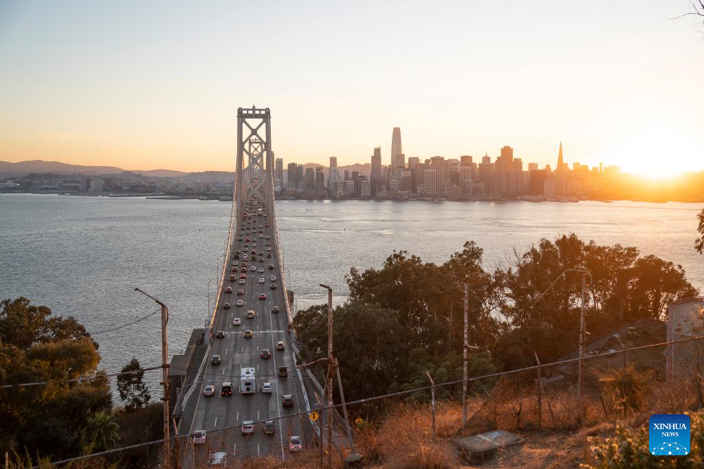 This photo taken on Oct. 31, 2023 shows the Bay Bridge in San Francisco, California, the United States. The 30th APEC Economic Leaders' Meeting is going to be held in San Francisco. (Photo by Li Jianguo/Xinhua)