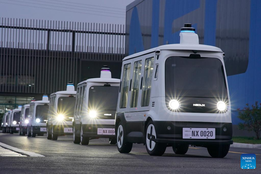 This photo taken in August 2022 shows driverless delivery vehicles during a road test at Neolix Technologies Co., Ltd in Beijing, capital of China. (Xinhua)