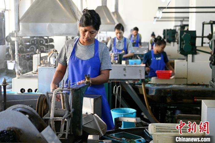Workers from Myanmar work at a raw silk manufacturing company in Longchuan county, Dehong Dai and Jingpo Autonomous Prefecture, southwest China's Yunnan Province, on Oct. 18, 2023. (Chinanews.com/Li Jiaxian)