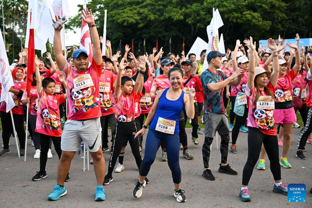 People participate in the Malaysia-China 2023 friendship run in Kota Kinabalu, Sabah, Malaysia, Nov. 12, 2023. About 3,000 people participated in the event. (Xinhua/Cheng Yiheng)