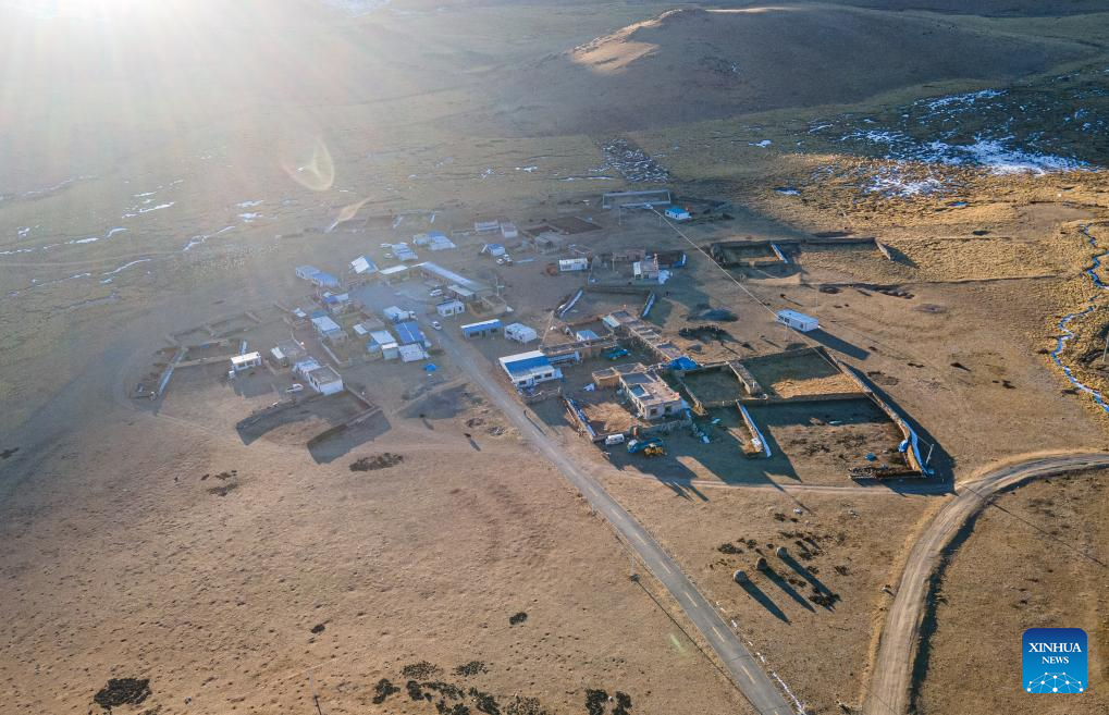 This aerial photo taken on Nov. 10, 2023 shows a winter pasture in Dabug Village of Damxung County, southwest China's Xizang Autonomous Region.(Photo by Tenzin Nyida/Xinhua)