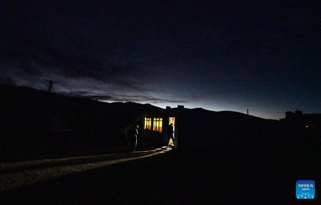 This photo taken on Nov. 10, 2023 shows a winter pasture at night in Dabug Village of Damxung County, southwest China's Xizang Autonomous Region. (Xinhua/Jigme Dorje)