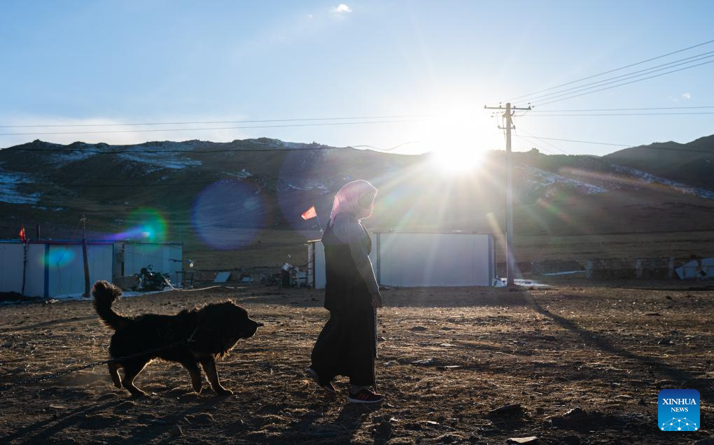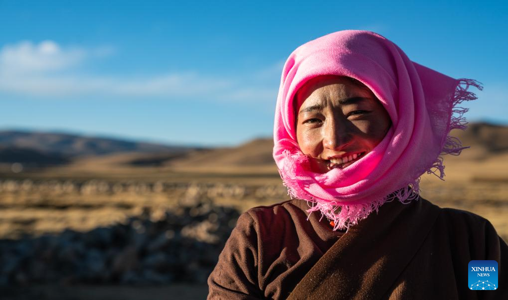 A herdswoman is pictured at a winter pasture in Dabug Village of Damxung County, southwest China's Xizang Autonomous Region, Nov. 10, 2023. (Photo by Tenzin Nyida/Xinhua)
