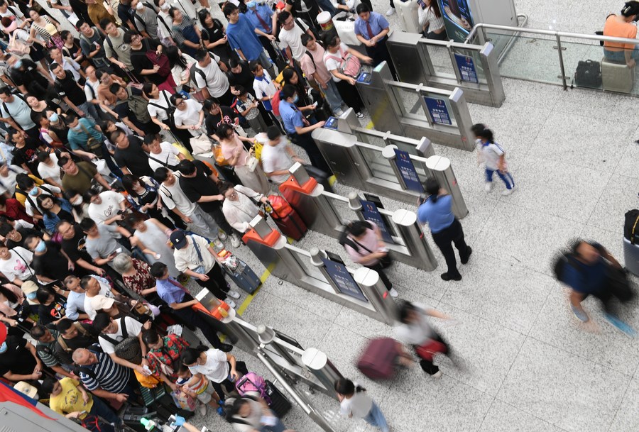 Passengers go through ticket gates at Shenzhen North Railway Station in Shenzhen, south China's Guangdong Province, Sept. 28, 2023. (Xinhua/Mao Siqian)