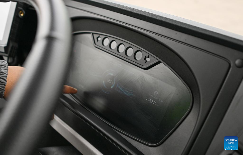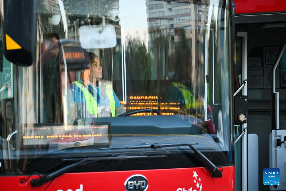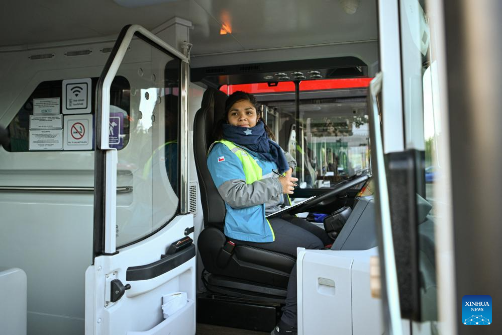 A driver prepares to start an electric bus for the Pan American Games 2023 in Santiago, Chile, Nov. 2, 2023. (Xinhua/Xin Yuewei)