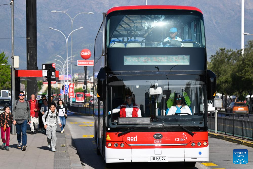A fleet of 10 Chinese-made double-decker electric buses have started to provide services on a new route, launched for the Pan American Games 2023, in Santiago.