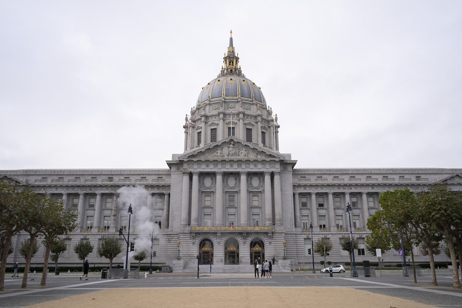 This photo taken on Nov. 5, 2023 shows the City Hall in San Francisco, California, the United States. The 30th APEC Economic Leaders' Meeting is going to be held in San Francisco. (Photo by Li Jianguo/Xinhua)