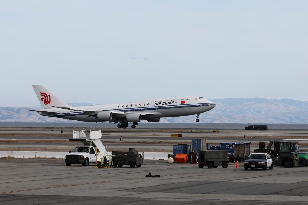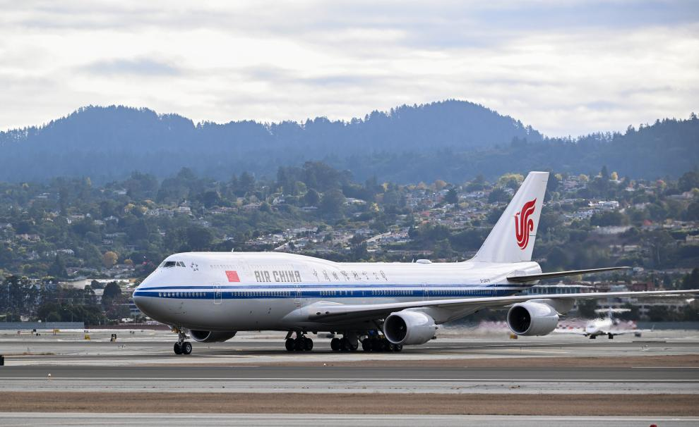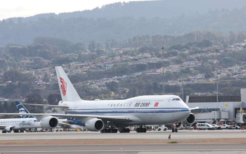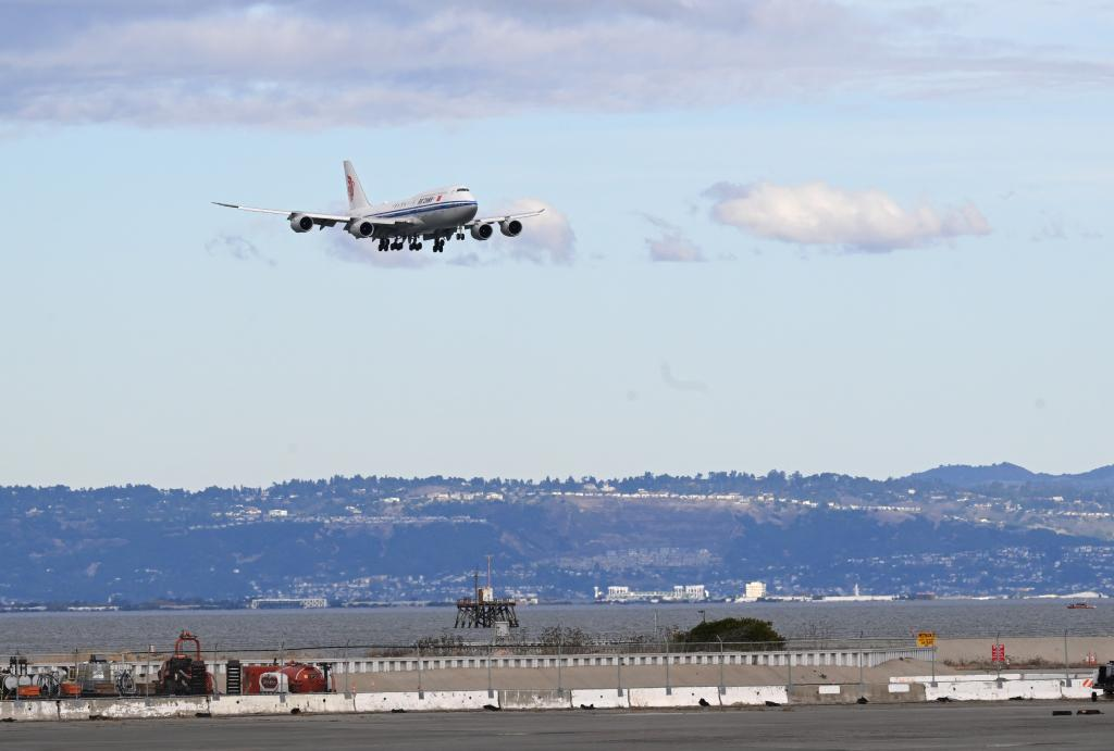 Chinese President Xi Jinping's plane arrives in San Francisco, the United States, Nov. 14, 2023. Xi on Tuesday arrived in San Francisco for a summit with U.S. President Joe Biden, and to attend the Asia-Pacific Economic Cooperation (APEC) Economic Leaders' Meeting. (Xinhua/Rao Aimin)