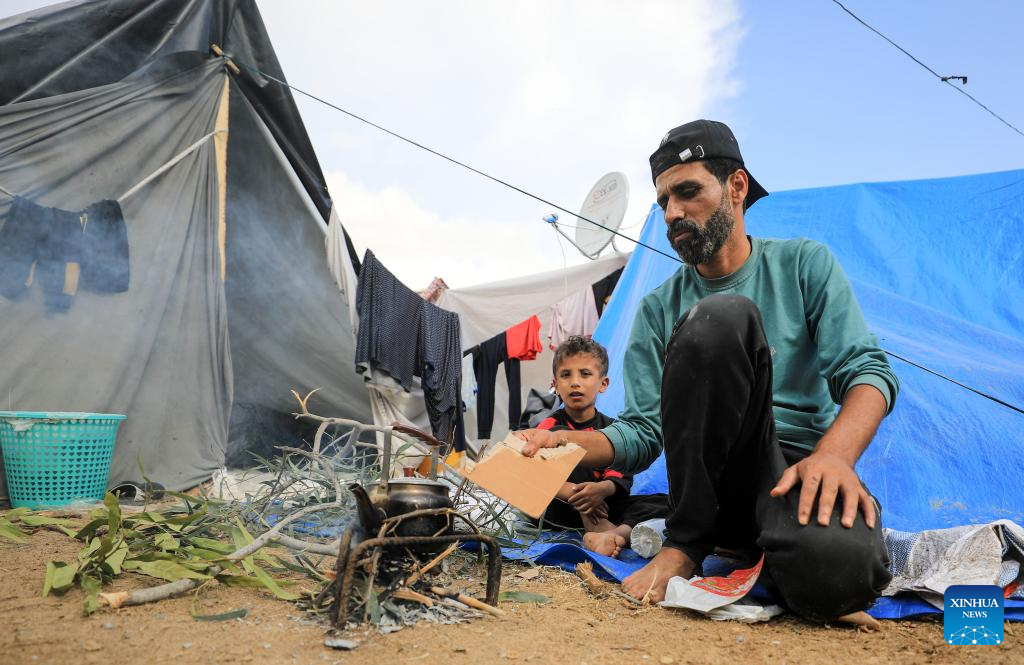 In pics: displaced people in temporary shelter in southern Gaza Strip