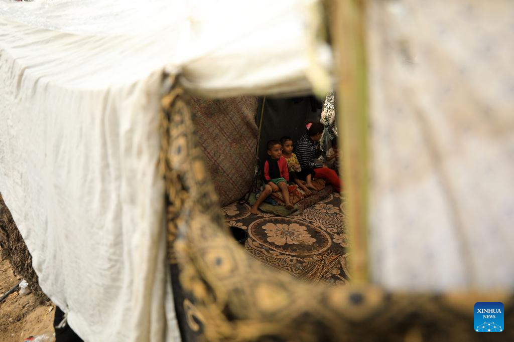Displaced people are seen at a temporary shelter in the southern Gaza Strip city of Khan Younis, Nov. 14, 2023. (Photo by Yasser Qudih/Xinhua)