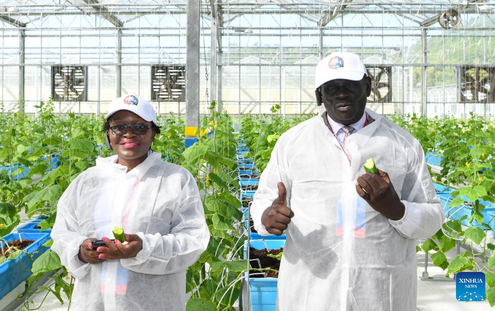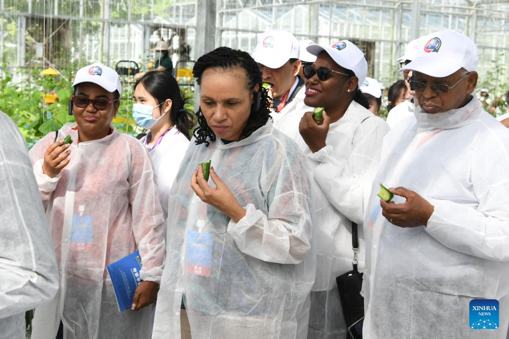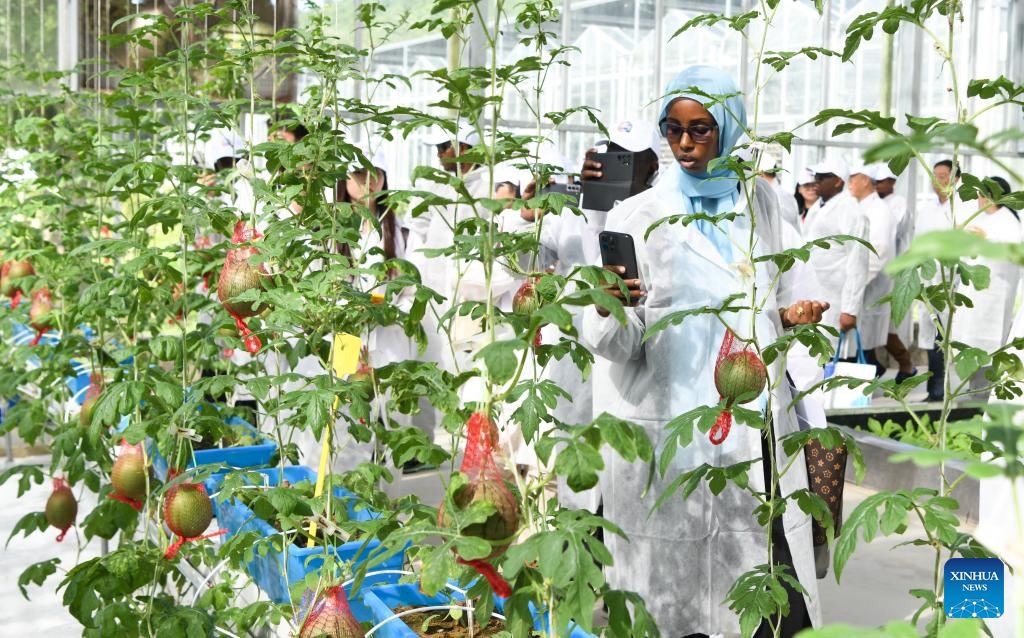 Participants of the 2nd Forum on China-Africa Cooperation in Agriculture visit an agricultural science and technology innovation center in Sanya, south China's Hainan Province, Nov. 14, 2023. The 2nd Forum on China-Africa Cooperation in Agriculture is held in Sanya from Monday to Wednesday. (Xinhua/Yang Guanyu)