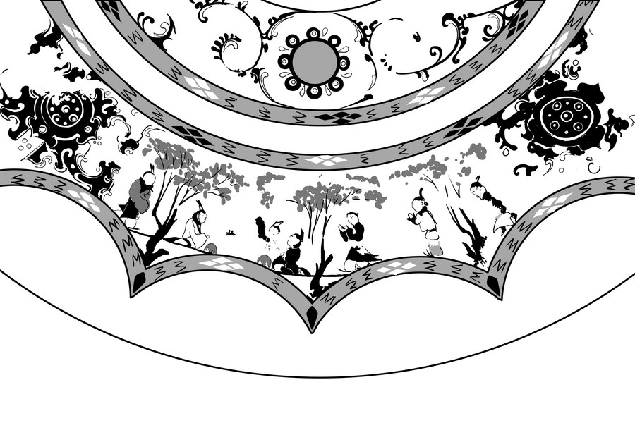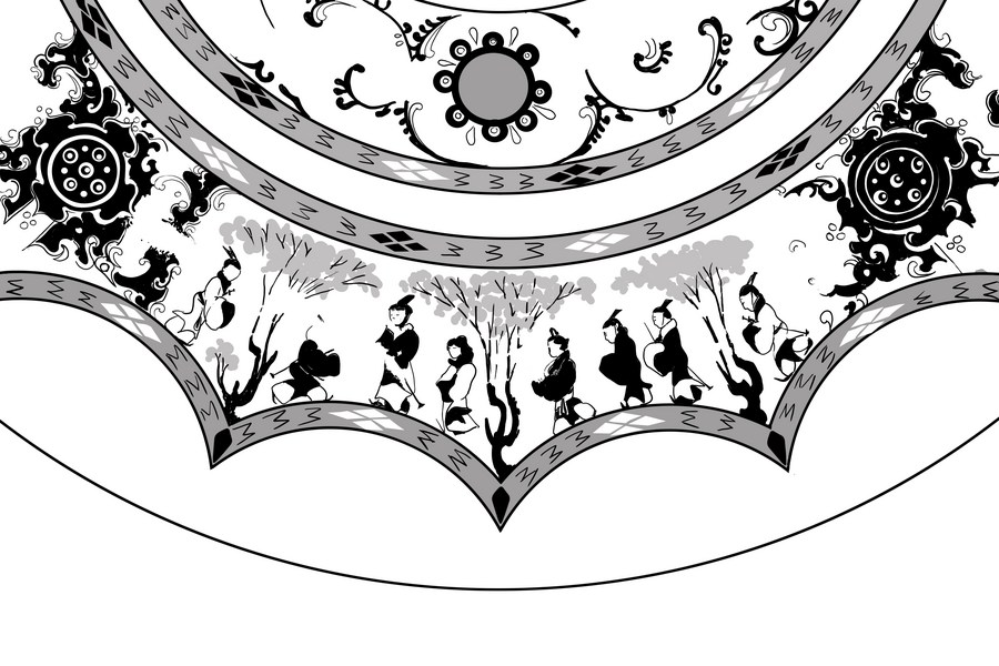 This draft shows part of a bronze mirror with patterns depicting an audience activity, collected at Xi'an Museum in Xi'an, northwest China's Shaanxi Province. (Xinhua/Li He)