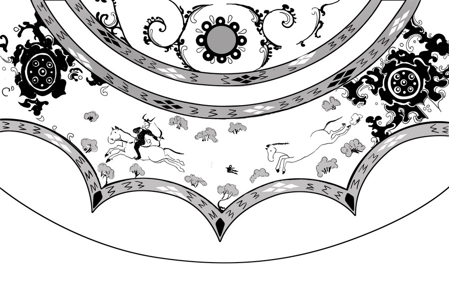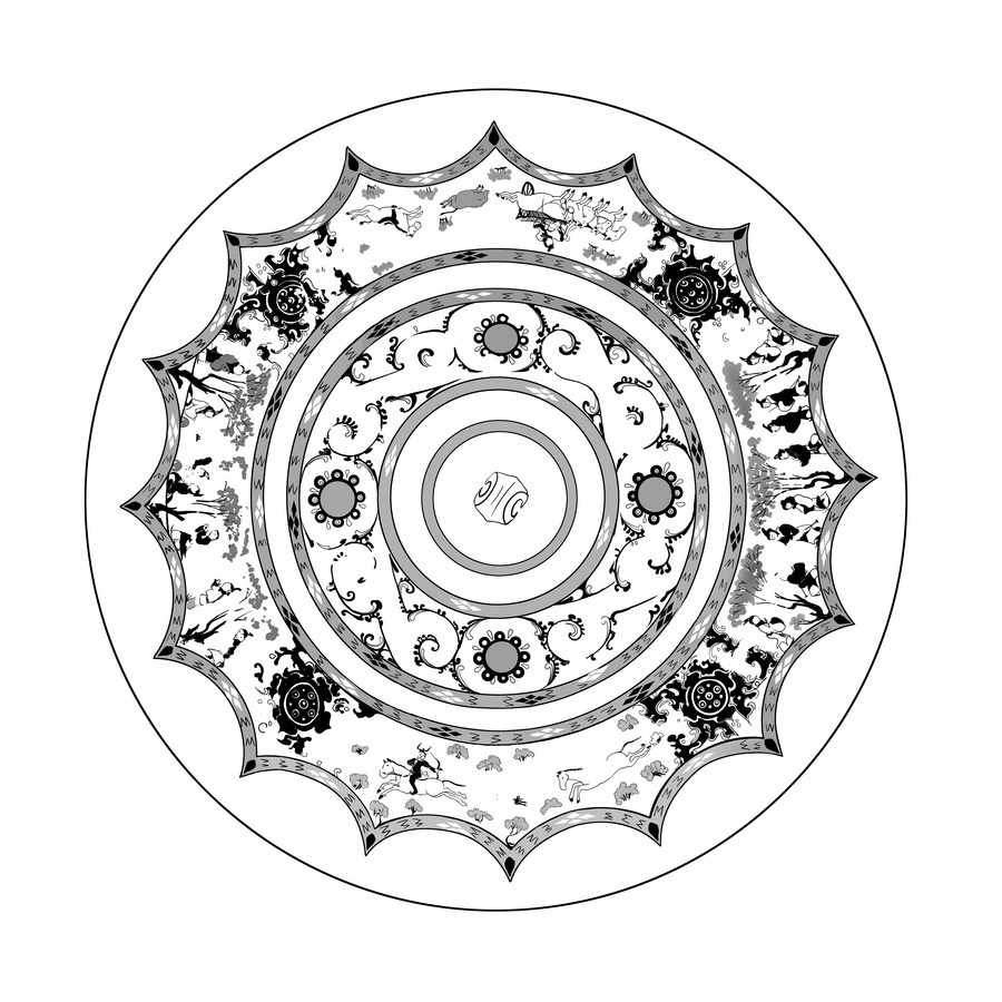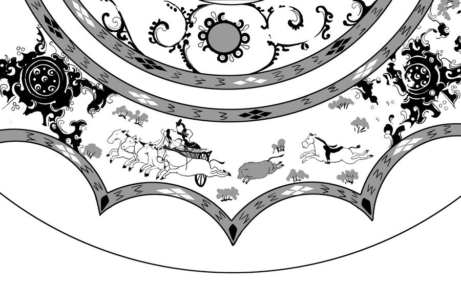 This draft shows part of a bronze mirror with patterns depicting a hunting event, collected at Xi'an Museum in Xi'an, northwest China's Shaanxi Province. (Xinhua/Li He)