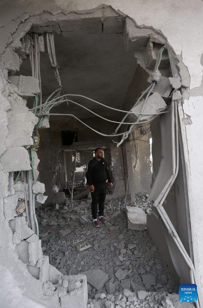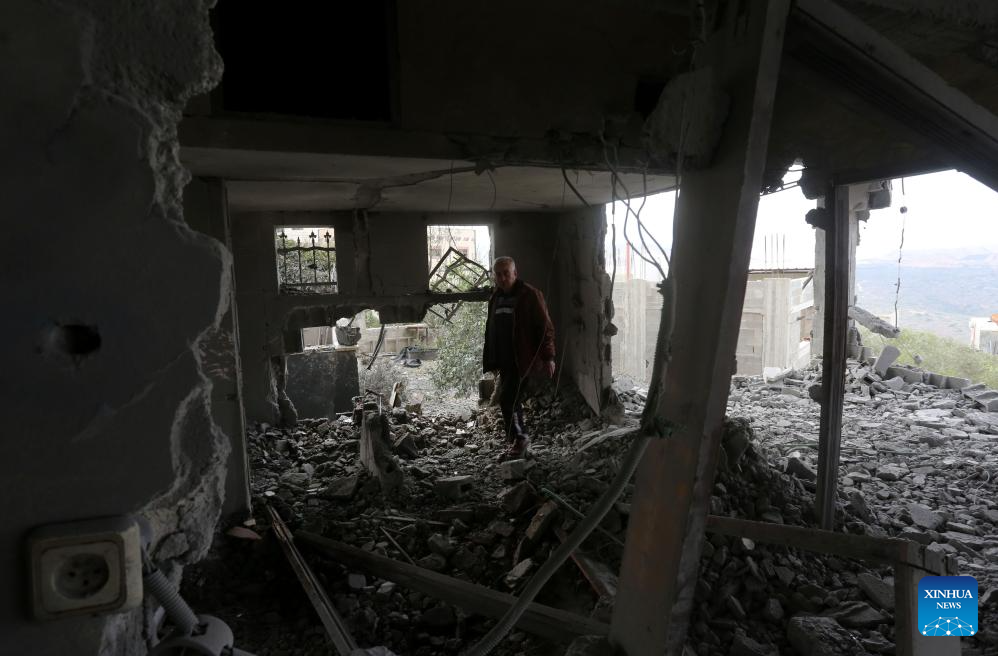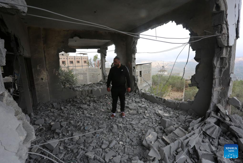 A man is seen inside a building damaged after clashes in a village near the West Bank city of Nablus, on Nov. 14, 2023. At least 196 Palestinians have been killed by Israeli gunfire in the West Bank since a new round of Israeli-Palestinian conflict broke out on Oct. 7, according to WAFA, the official Palestinian news agency. (Photo by Ayman Nobani/Xinhua)